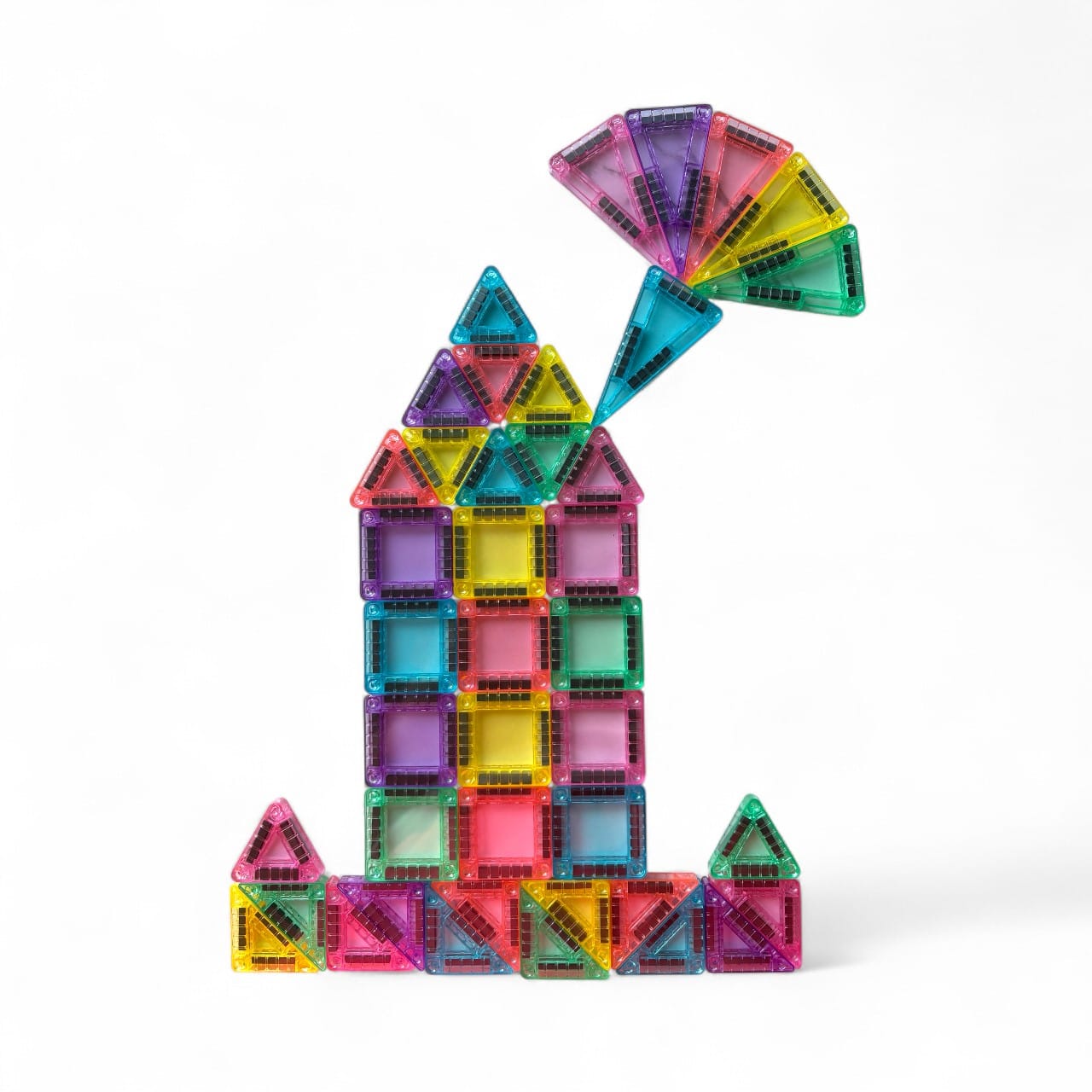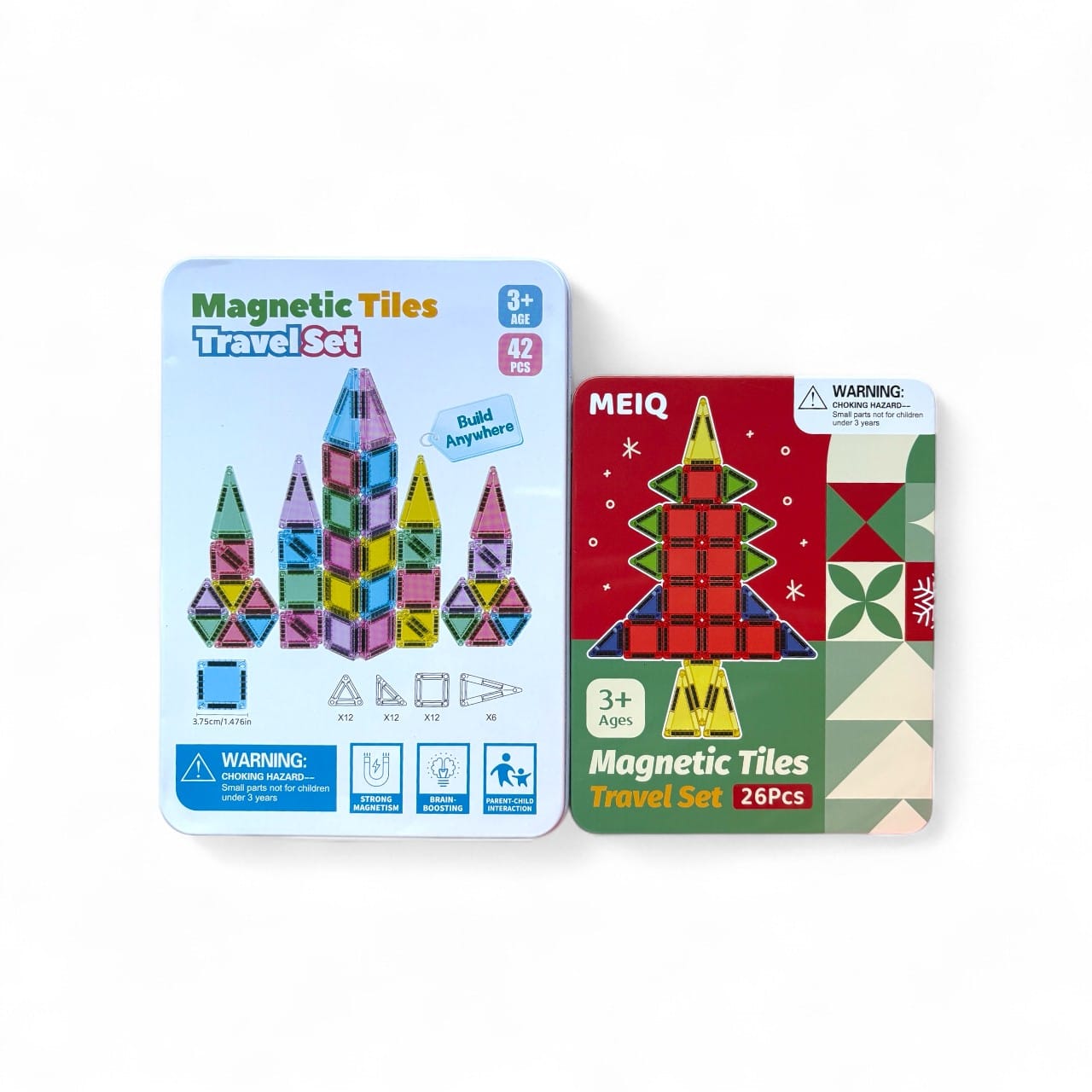 A slim, portable STEM kit that turns travel time into creative time. This Montessori-style magnetic tiles travel set comes in an iron storage box for easy packing and on‑the‑go play—ideal for airplanes, car rides, and hotel downtime. Pieces click together cleanly (no rolling away under seats), encouraging screen‑free building challenges and imaginative designs.
