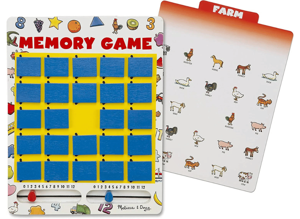The Melissa & Doug Flip to Win Travel Memory Game is a fun and educational game for kids that can be enjoyed on the go. It includes a sturdy wooden frame with 25 flaps and two sliding scorekeepers, as well as seven different double-sided laminated cards featuring themes such as animals, shapes, and colors. The bungee-hinge design enhances the durability of this game, making it long-lasting even with frequent use. Kids love playing the memory game inside or outside – no matter where you take it, they will have hours of entertainment!