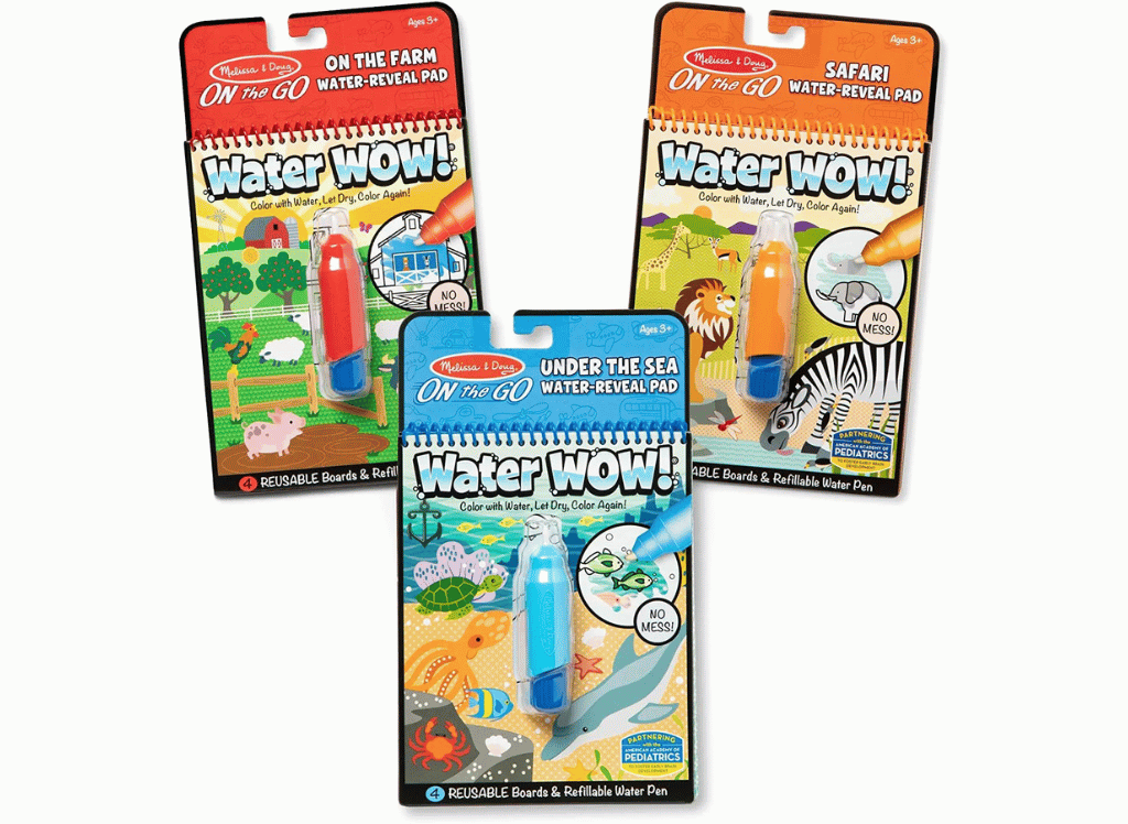 The Melissa & Doug Water Wow! Water Reveal Pad Bundle is an excellent choice for parents looking to promote their child's development. This bundle includes four reusable pages and a refillable water pen that stores in the cover, making it ideal for travel. These activities are designed to help children develop multiple skills such as fine motor skills, early writing/reading skills, and visual discrimination. As one of the best toddler travel toys on the market today, this bundle is sure to provide hours of educational fun wherever your little one goes!