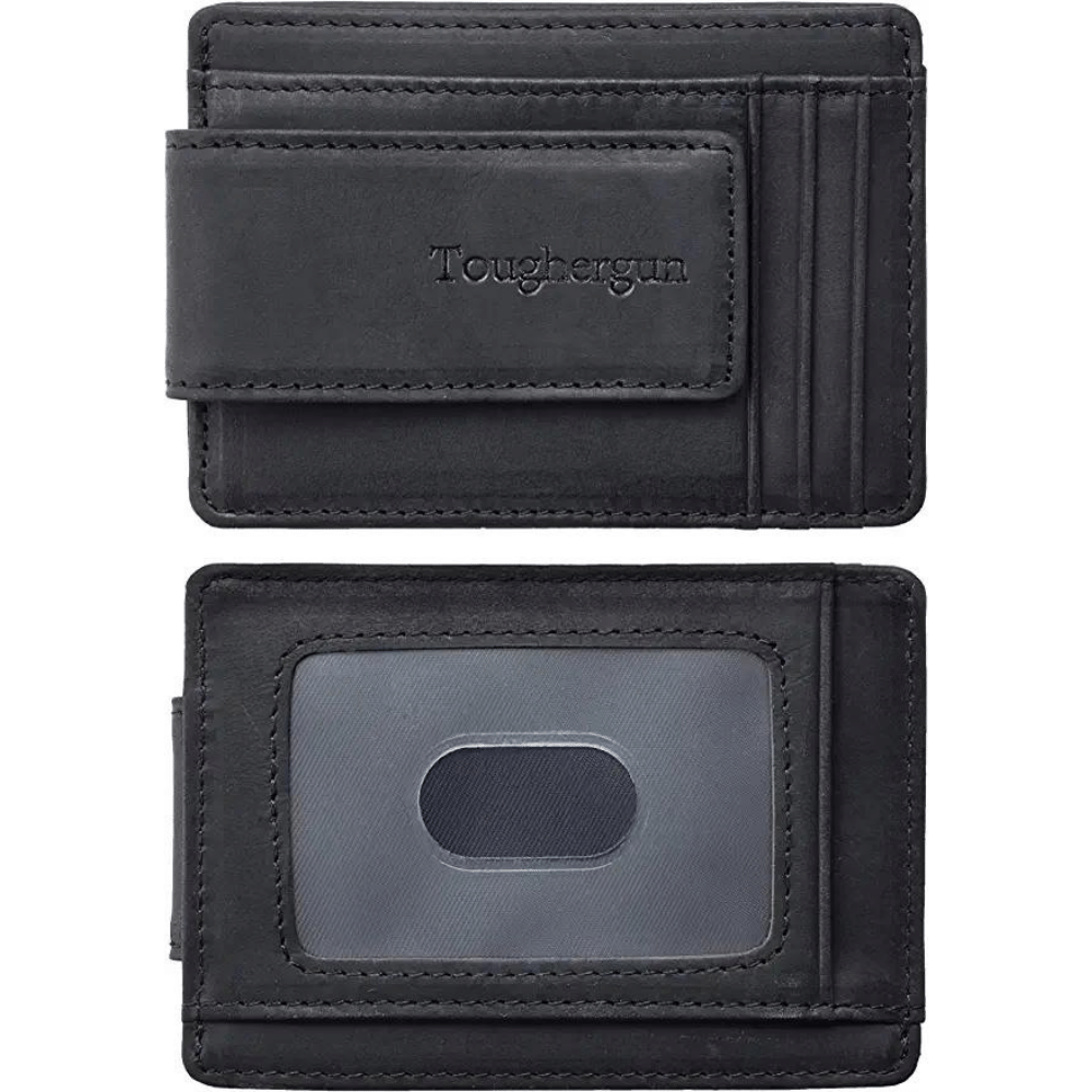 Toughergun Genuine Leather Magnetic Front Pocket Money Clip Wallet RFID Blocker