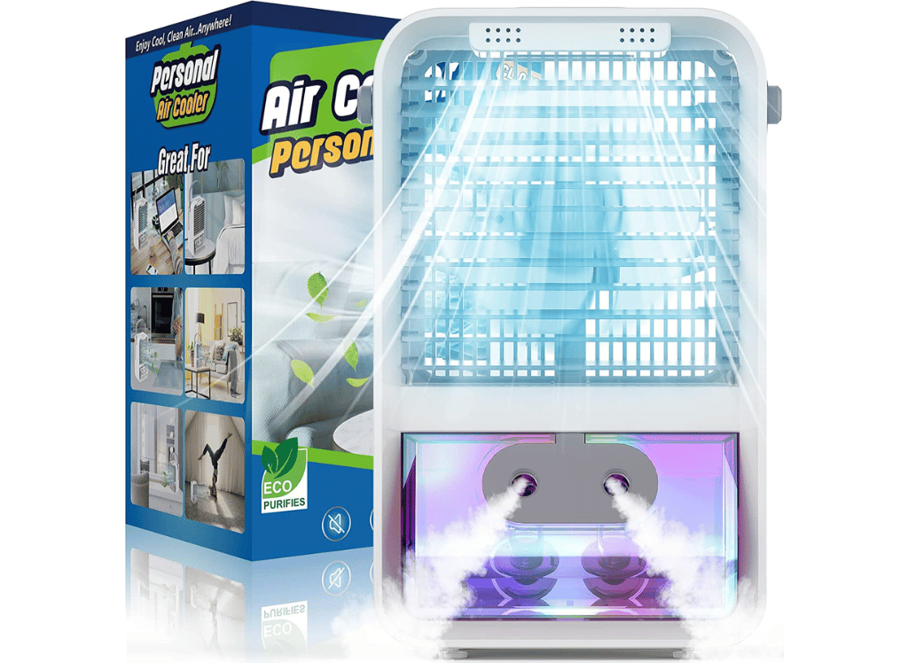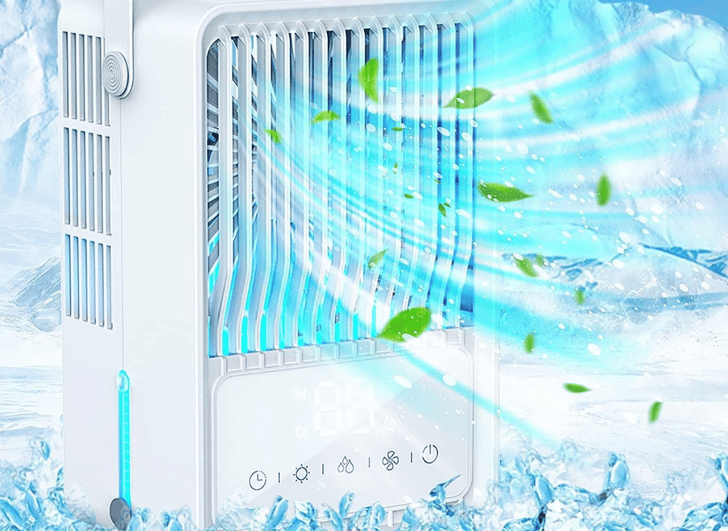 This compact air conditioner is rechargeable and features a 5200mAh battery with up to 10 hours of continuous use. It has three speed settings to adjust airflow, so you can personalize your cool air experience no matter where you are. Perfect for camping trips or long days in hot weather - this small yet mighty appliance will keep you comfortable all day!