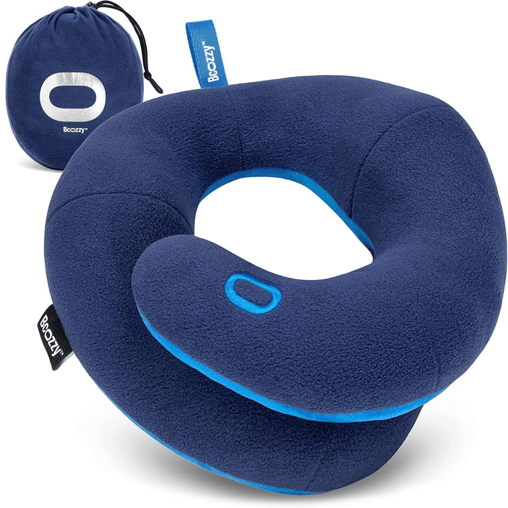 The Bcozzy Kids Travel Pillow is a breathable and comfortable option for traveling with children. The soft fabric shell is filled with down alternative and can be machine washed. The pillow comes with a carry case and has a snap loop to easily clip it to backpacks, suitcases, and car seats. The small size is for kids ages 3-7 years old, and the medium is for kids ages 8-12 years old.