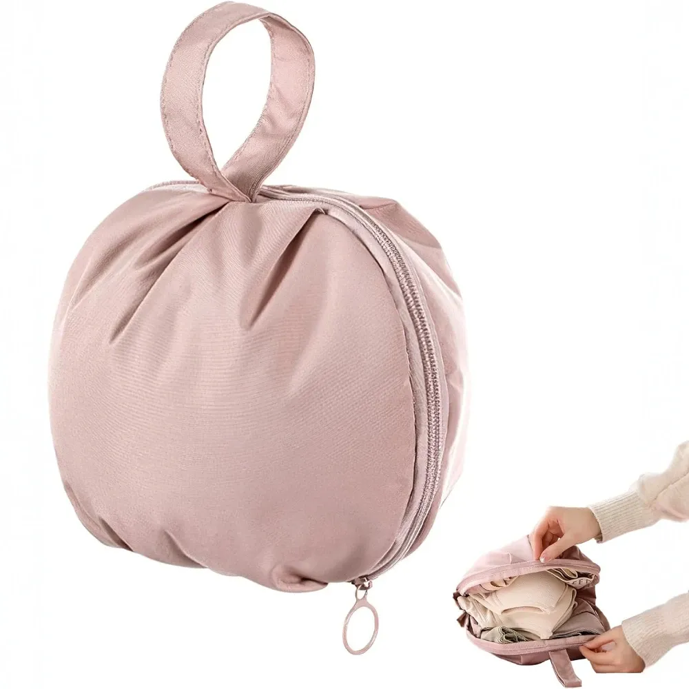 Small but surprisingly spacious, this round lingerie travel bag is designed for women who need a compact organizer that still holds a lot. Made from durable polyester, it includes multiple compartments to keep underwear, socks, and bras neatly sorted.