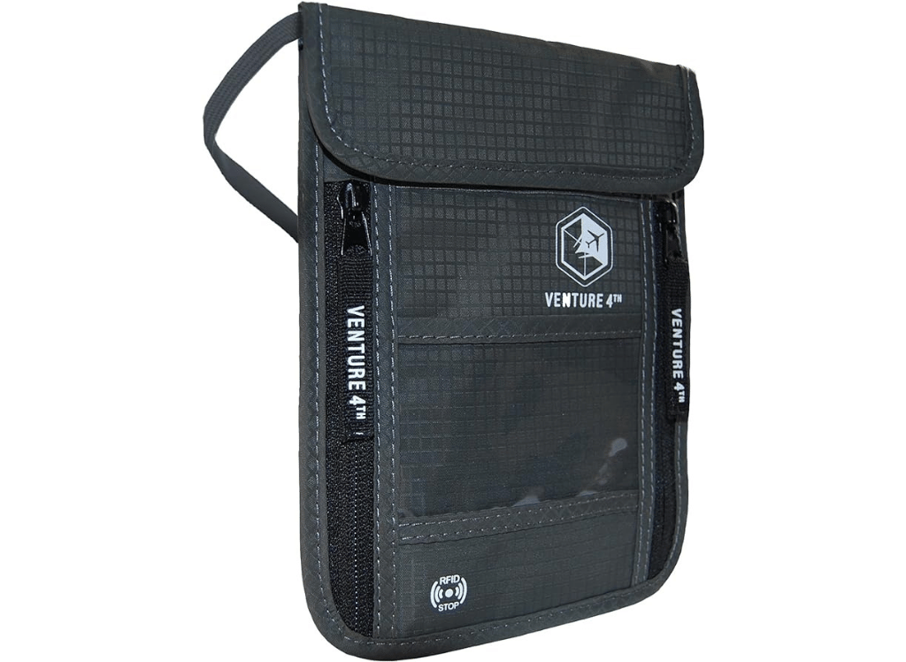 - Multiple Compartments: Provides ample storage with three compartments for passports, credit cards, boarding passes, and mobile phones.
