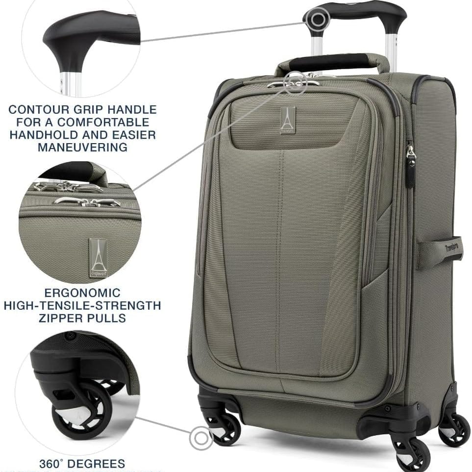 The Travelpro Maxlite 5 Softside Expandable Luggage is a lightweight carry-on designed for frequent travelers, and is a softside suitcase made from durable, flexible materials. Compared to the Travelpro Platinum Elite, another high-end option from the same brand, the Maxlite 5 stands out for its lighter weight and streamlined features, making it easier to maneuver and pack for short trips.