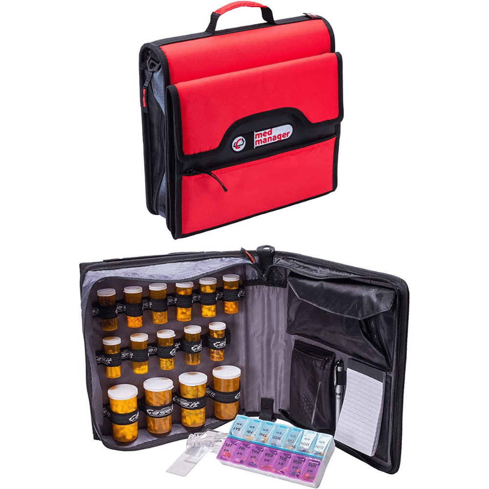 The bright red color is perfect for spotting in a packed suitcase, and the durable construction means it will stand up to years of use. Plus, the Med Manager makes it easy to keep track of your medications - no more guessing which pill is which! Keep your family healthy and happy with the Med Manager Deluxe Medicine Organizer.