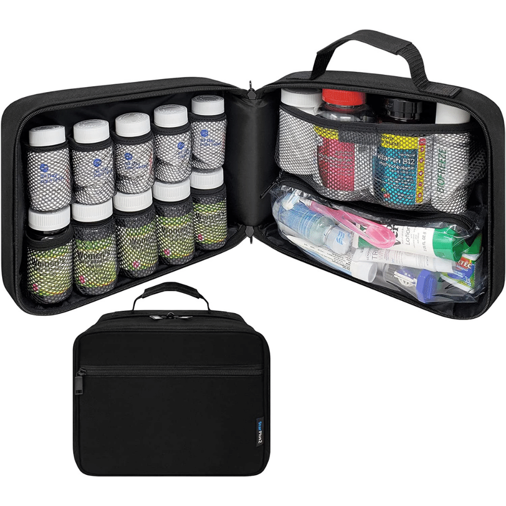 Looking for a better way to organize your pills and medical supplies? Check out the StarPlus2 Large Padded Pill Bottle Organizer! This clever organizer features fixed pockets that hold pill bottles in place, plus a padded interior for extra protection.