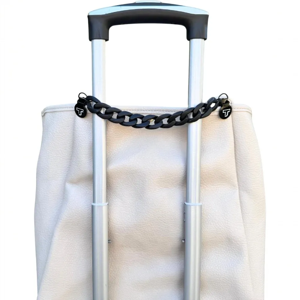 - Trolley Snap: A stylish acrylic chain with a padded clip. This product is designed for bags where the magnetic strap won’t work—specifically, bags that have a handle or a lip for the clip to grip onto.