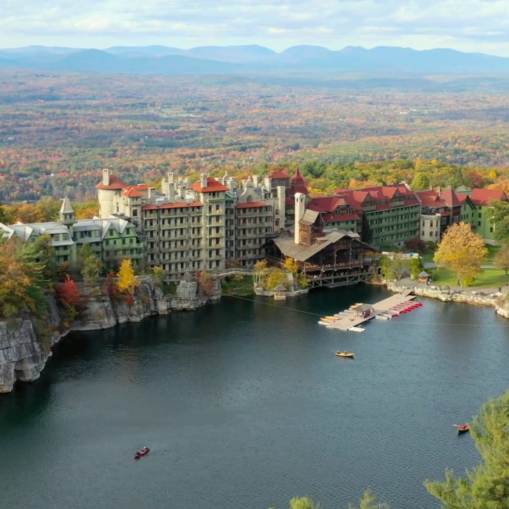 This Victorian castle resort, a National Historic Landmark, is a truly magical time in the fall. Situated on a private glacial lake with sweeping views of the Hudson Valley, Mohonk Mountain House is an all-inclusive romantic destination. With miles of hiking trails, horseback riding, and stunning fall colors, there are endless fun things to do. For a truly unforgettable moment, hike to the Sky Top Tower for a 360-degree panorama of the fall foliage. While not bookable on third-party sites, an overnight stay here is a bucket-list experience.