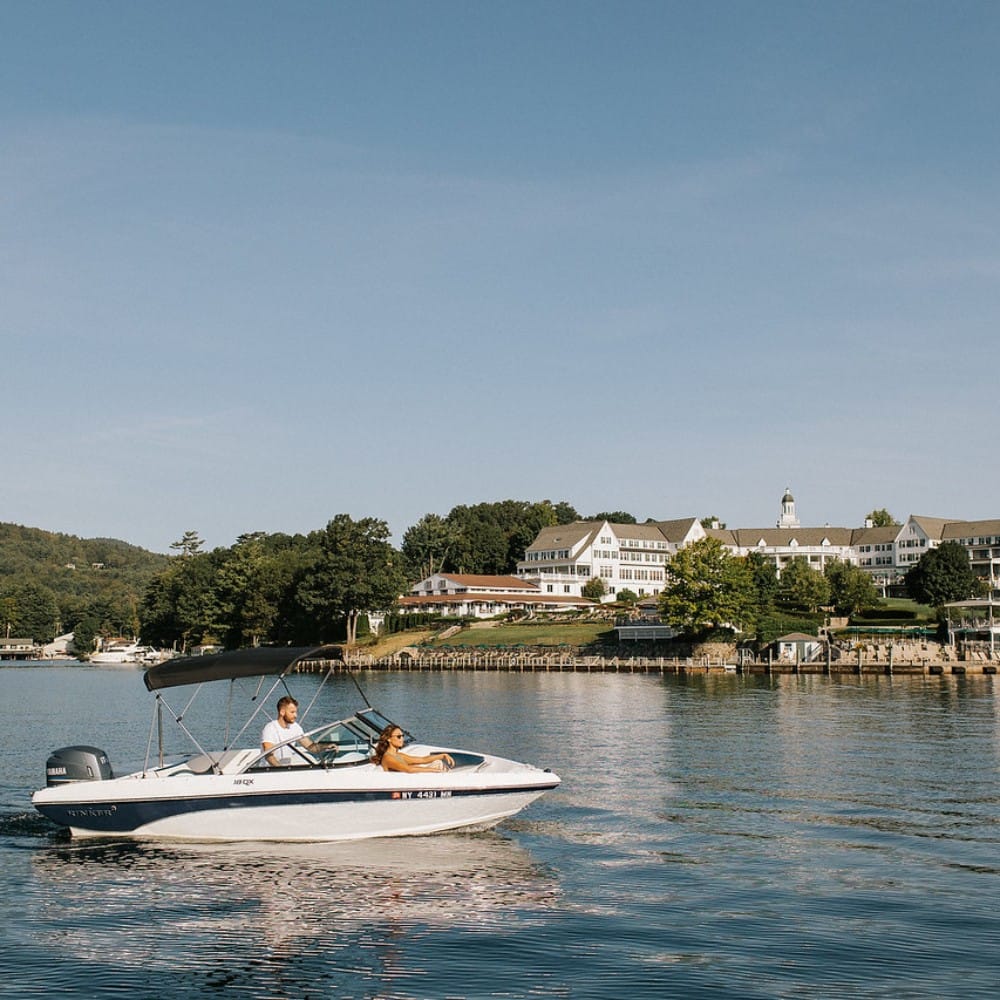 Located on a private island on Lake George, The Sagamore Resort is a historic hotel surrounded by the stunning autumn colors of the Hudson Valley region. The property offers breathtaking views of the lake and the Adirondack Mountains, where the trees turn brilliant shades of red, orange, and yellow. Guests can enjoy the fall foliage from the water on a boat tour or explore the charming town of Bolton Landing.