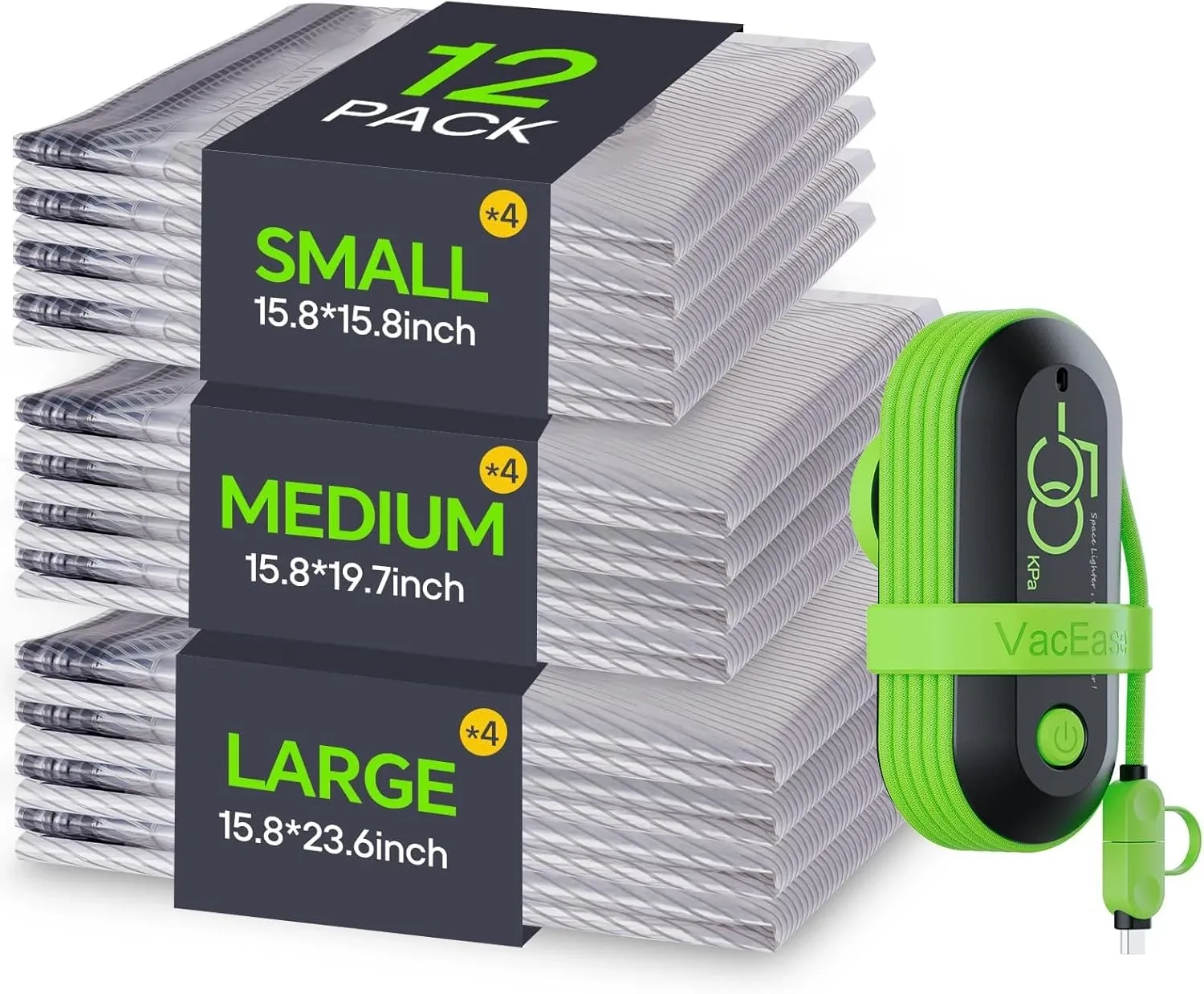 - Electric pump compresses up to 90 bags